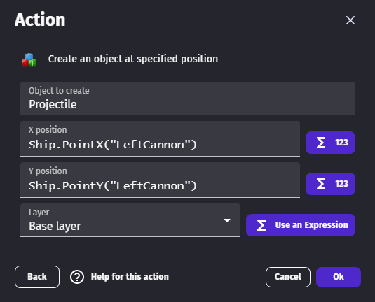 Custom points can be used in events with the PointX and PointY expressions. Custom point names must be surrounded by double quotation marks.